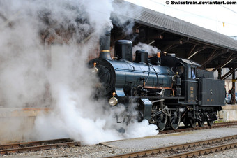 Note: Today the DBB (Dampfbahn Bern) had her 40 years anniversary, so they made a tour on the old Hauenstein line, with Eb 3/5 and Ec 4/5 in "Double-Traction". I took this picture this morning around 08'15 AM. Unfortunately it was very rainy and so the photo is blurry. Its quite a sensation usualy this two locos are alone on the tracks and they are the biggest and most powerful locomotvies the DBB has.