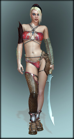 Great looking outfit. I love the detail level... This appears to be a new hair style you are using here, not sure about it yet, though I am finding that Rendering hair in Carrara is abit different. I still haven't used the Dynamic hair thing... How did you modify the skin shaders? Anywho, Great Job! Carrara, I am finding, is not the easiest software to use! Your image gives me hope!