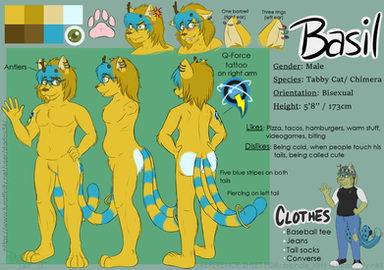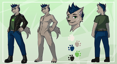 Clothing is pretty much what I would wear. Hoodies, button-downs, cardigans even (nothing fugly). Things that go over shirts. Never just a shirt or t-shirt. There must be at least 2 layers. Jeans, no shorts if it can be helped. Since I drew him digitigrade putting shoes on him seemed awkward. So as far as shoes go, navy blue Converse. Lastly the glasses are optional. I do wear glasses pretty much all the time but I don't even draw them in more than half the time.