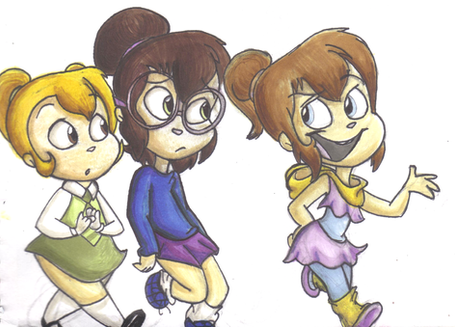It's the Chipettes in Ruby-Spears style. If there something to depart from CG/Live-Action format/generation, those designs from season on through five will be used for future DVD Chipmunks film that will be similar Scooby Doo 2010 DVD movies
