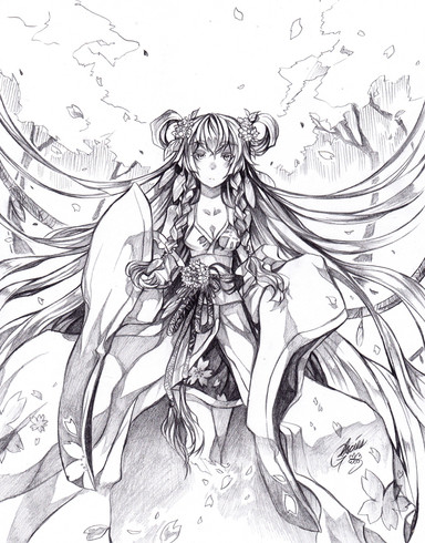 Great line work and wonderful job on the details of the outfit. The shapes of the face, eyes, and mouth is very nice too. n.n lovely work.