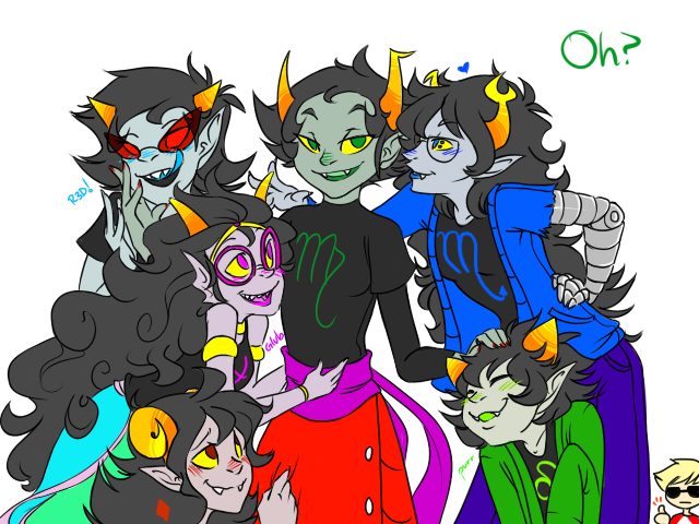 Shame is that my Dad isn't constantly trying to auspicise between us all. My oh not so vriska sister is, so maybe she's more like Aranea. Other thing, me and my karkat mom do headbutt often, she dislikes when I "disrespect her leadership" x]