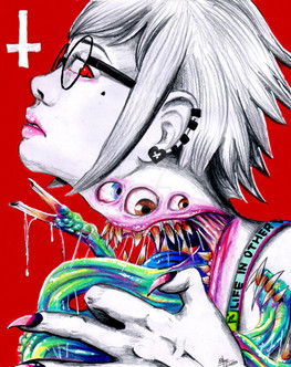 #alone #artwork #dead #eyes #gehenna #girls #hands #holding #longtongue #me #myself #night #snake #wood #twoheadedgirl #artworkbyme #sybilhighson