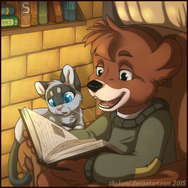 This is simply adorable. I love how Olivia is curled up beside him. Love it, love it, love it! You're style of drawing these lovable characters are astounding without a doubt!