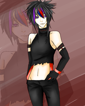 Curse you backgrounds! It's too hard to make you look descent and this one just hurts my eyes.Just a pic of my character Evan. He's a boy in case that wasn't obvious from the name and the flat chest. Not sure what's with the outfit, I just like drawing girly boys in feminine outfits (cause I fail at drawing masculine men).