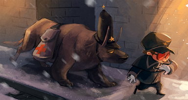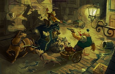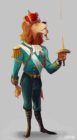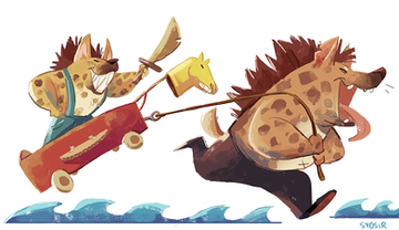 A lion, knighting a hyena?... Very interesting, considering the species's usual rivalry.