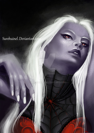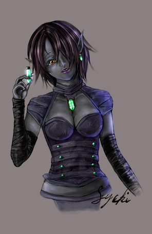 And yes, silver hair. I just thought black hair would be fun, for once. xD I mean, there are such things as dyes. And drow are such vain crearures... xD