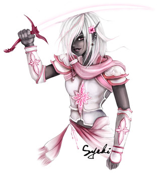 Ahh, she's adorable! (A lot of female drow I've seen online have a worrying tendency to be adorable while being badass, lol!) I just love her face. ^_^ The armour design is also damn awesome. *Faves*