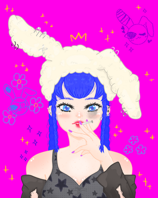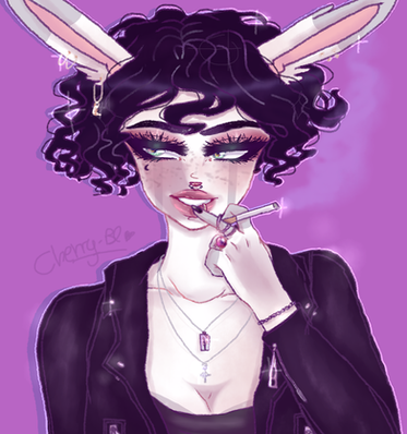 #blood #bunny #cute #dark #gray #grey #hare #pinkish #punk #metalchain #greyhairedgirl #adorable #bunnygirl #bunnysuit #choker #costume #creepy #dressup #grayhair #greyhair #halloween #hotpink #pink #rabbit #tattoo #grayhairedgirl