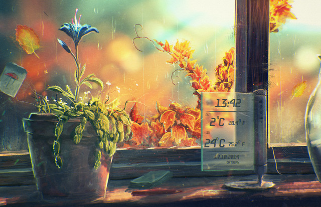 Cool light from traditional bulb (last picture). Magic ;D And there was someone, who made coffee, and didn't want to wash the dishes! It's great, how it's going through 1 day/1 year.