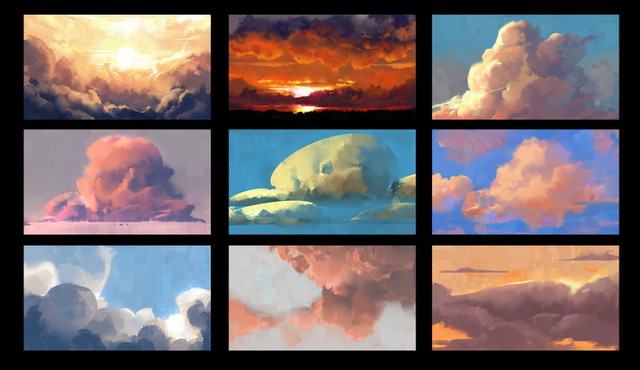 This makes me want to stop using my cheat cloud brush and start making more interesting ones, nice work dude.