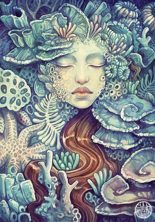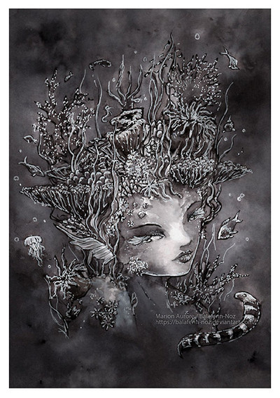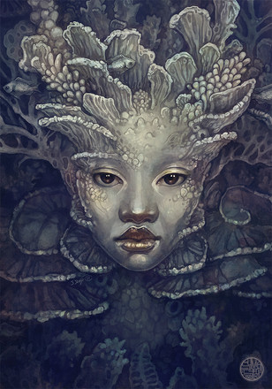 I've been doodling a lot of floating heads lately. I intended to connect her with an entire coral reef and proper background but I ended up liking the floating look to much.___