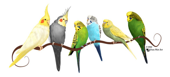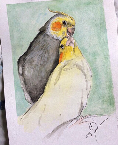 I've been doing a lot of watercolors lately! Here are some cockatiels done from reference photos.
