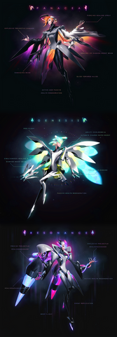 More on Resonance here and here ✌️With Moira's and Echo's themes of striving for improvement via bio-evolution and tech-adaptation respectively, I've envisioned Resonance as a borderline pathological perfectionist megalomaniac who *loves* to exist and loves to exert herself to her absolute limits