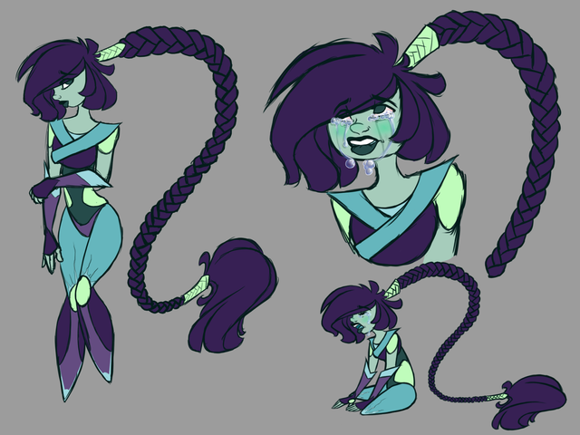 I decided to redesign Fluorite. and yes, I know, she's missing her braid now.The story for now is that she got poofed and that her braid got cut off in the process, but she liked it so she decided to keep it like that for a while.
