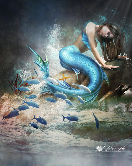 Wonderful work. I love all the textures and scales on her face and body. Also the spray of the waves and the big crashing wave in the background really add to the feel of her being washed-up and stranded. Great concept and very nicely done