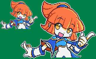 Wow, that works really well O_O And it's funny; because as good as the 8 bit looks, comparing it to the 32 bit makes the latter seem INCREDIBLE. Your sprites are fantastic. Did you have to do them again for the 16 and 8-bit versions, or was there a filter that would do it for you?