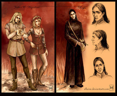 -Titus: un mercenaire,TRES grand, blond cheveux courts et peau dorée, à moitié dévisagé par des brûlures. (je ne trouvais pas de nom sur le moment quand je l'ai fait apparaitre et je lui ai donné un vieux nom de chien!! en plus il est super ce perso! XD)