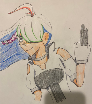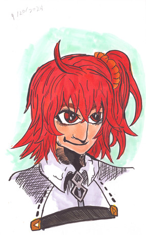 My own mid tier fanart take on an existing artwork belonging to @autogiraffe Midna, with them tying their hair back. i know proportions are wonky n some issues with smudging n colours. i loved the og piece so much i wanted it in my sketchbook