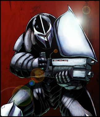 I visited a few days ago and watched him using oC 1.1 because I was interested in learning to use it myself. Whilst not copying his style at all, I picked up a little understanding of how the program works and decided I would practice on my Strogg sketch [link] which I did in week 1 of my Job Search Training course (which I always intended to colour).So here is a WIP of the colours thus far, they're very quick mostly and very subject to change. This is only supposed ot be a fairly quick digital paint though.