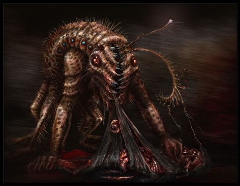The Hell-ish pit of lust, hate, envy, etc., swirls and coalesces into......... DEVOUR! .... such a nasty spawn.