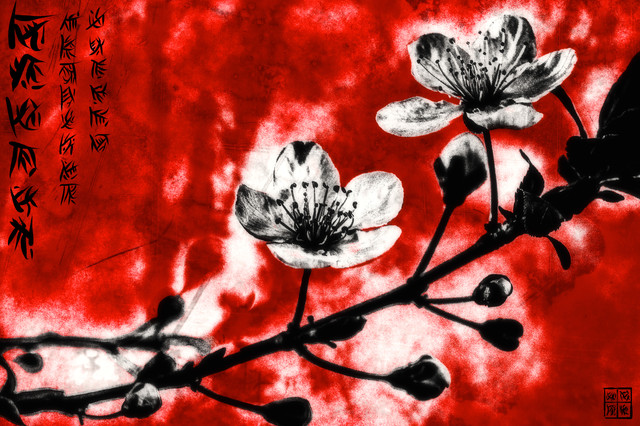 #blossom #flowers #japan #japanart #kanji #lineart #nature #plants #red #spring #tree