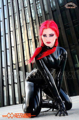 So many pictures of girls in black latex catsuits, this one stands out! Thank you