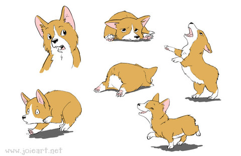 Doodles in many styles of a welsh corgi. I haven't a clue if it's a cardi or a pem, he seems friendly so I guess it's a pem lolShh, besides being with my pup, corgis are my happy pills too