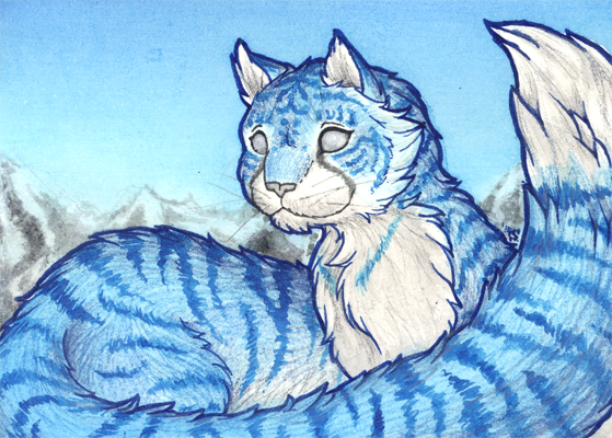 awwwrrr so floofy! good job with the pose and the lighting, the aqua/cyan colour really makes the whole thing pop. what a pretty place she is in. this so gorgeous, thank you!