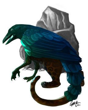 Physical appearance: Giant animal gryphon that has snake as tail. (The snake has its own brains, lungs, heart and so and whole green scaled part of tail is under its control. In transition area there are both gryph's and snake's nerves. Snake is a little poisonous and has sharp teeth, dangerous for little rodents mainly because poison is strong enough to kill a housecat but nothing bigger. Snake could die without any bigger problems for gryphon but if gryphon dies before snake it won't stay alive long.) As any of his species, he can’t close his beak properly because of teeth.