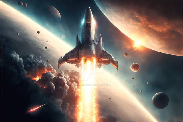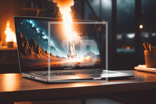 Laptop screen with vibrant rocket launch on clear blue sky, placed on wooden surface in an indoor settingAfter you have bought an artwork write me a deviantart message with the ID below. After that you will receive the height resolution artwork without watermarks.