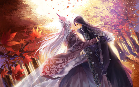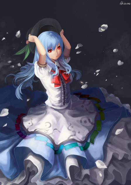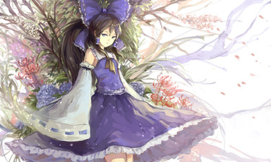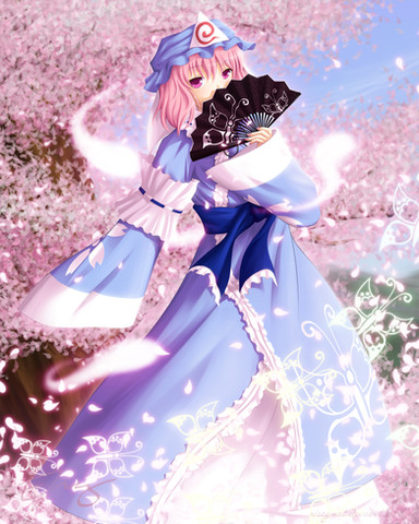 This is a fantastic piece. The amount of patience you must've had to paint every petal from the Saigyou Ayakashi. Even the ornate designs on her clothes and the added flowers to her hat. ldsjfdkjgsd I love this piece.