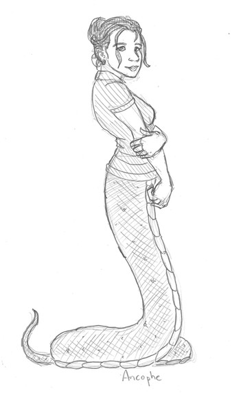 #blouse #book #curlyhair #female #greek #lady #lamia #magic #nora #roman #skirt #snake #snek #spellbook #tail