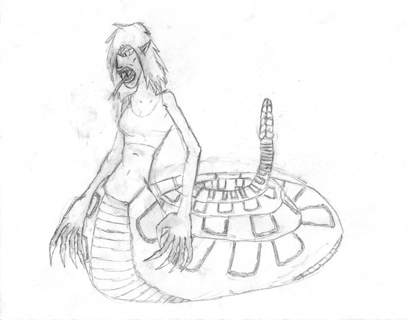 This is Nora, who is quite obviously a Lamia. Being a creature from Greek myth, she is very different from most of my other works on this site. Fear not, for I shall have more consistent uploads!