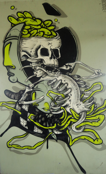 looks a bit Gustav Klimt inspired which is a nice play between canvas painting and spray can urban painting