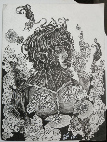 #ink #pen #drawing #emotion #face #hand #introverted #longhair #painting #smoke #thought #notai #notaigenerated #szellemkapuepito