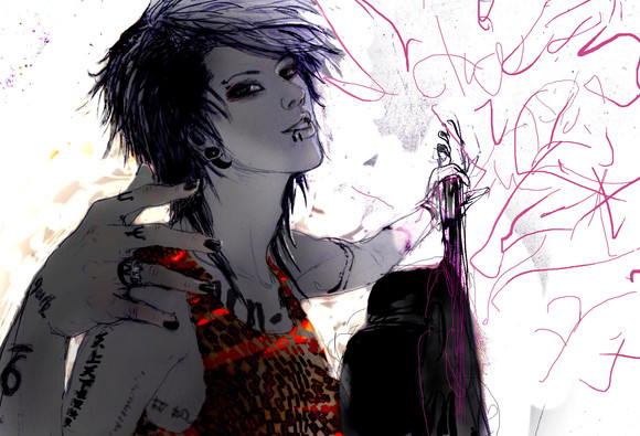 this is pretty. if i were to offer a suggestion it would be to account for curvature in clothing patterns, such as the stripes to curve outwards abit to show the persons's body. in my experience, it makes a big improvement