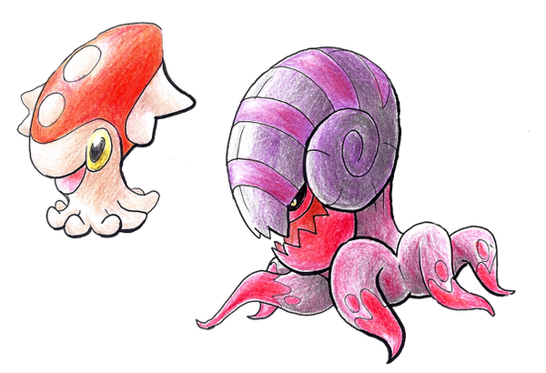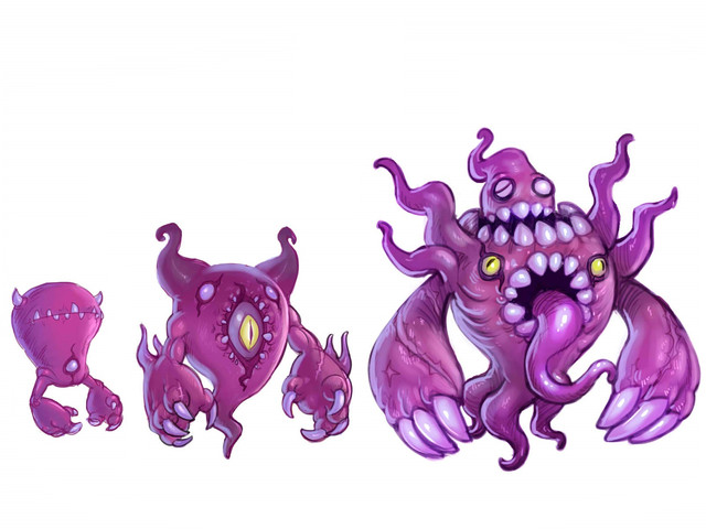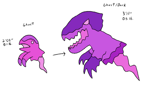 Okay, so just hear me out on this one. I got the idea at like 2 am while stoned, so it's a little... out there. The concept behind it is a mix of Cthulu and a creature so hideous that it hides its face under a paper bag. The first form is able to see out if its bag through the hole, but the second form uses its tentacles to feel around, since it is so ugly that it now just paints faces on its bags to make itself look more appealing. I'm also gonna need help deciding on a type for these guys. I was thinking of some combination of dark, poison, and/or fairy.Disguisting