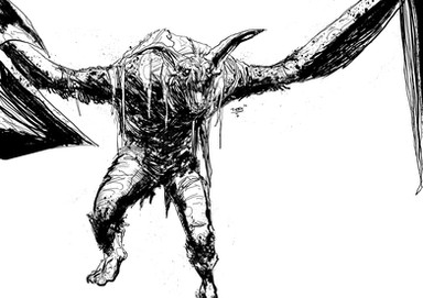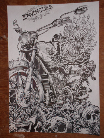 Forgive the horrible photostitching (the blurry bits, the black artifact at the bottom left), but I don’t have a scanner or a camera good enough to give this piece any solid justice. I’ll be hitting Officeworks later to get a better scan, but until then this will have to do.This piece will be up for sale (private auction) to help support Gary Friedrich, one of the original creators of the character currently und…er financial stress due to a legal battle with Marvel. Steve Niles, creator of 30 Days of Night and a tremendous number of other horror books has set up a fund, which the money from the sale of this piece will be going to.
