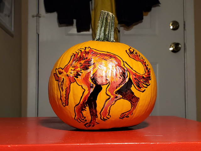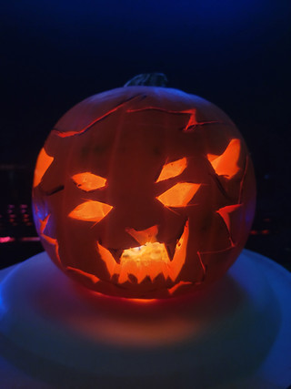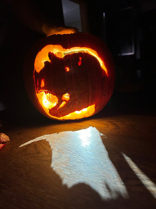 We painted Halloween pumpkins last night! I've barely ever carved mine, I always paint it hehe- I went with a domestic cat skull this year! The green around the skull glows in the dark βΊοΈRelated content