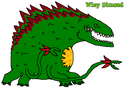 To the next morning the beast is revealed to be a mutated Paleosaurus that attack London,after it wreacks havoc it returns to the sea and is never seen again until ten years later,he is captured and taken to Monster Island where he befriends all the monsters.In 1999 he kills Ghidorah by shooting his electric rays at him...