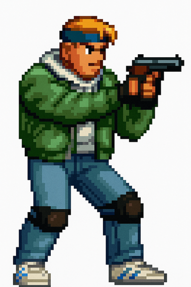 Never the less, if a video game version of Streets of Fire did exist, I'm certain this is what one of the sprites will look like as Tom Cody is known to use firearms.