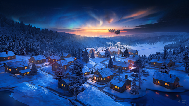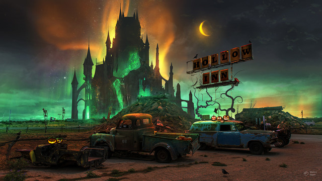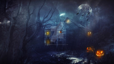 Also, your work the the shades of blue to grey here are amazing, it`s the perfect fit that doesn`t inspire loneliness, nor foes it inspire fear, it`s somehow, relaxing, just likeΒ the light reflected by the moon, altough you got the moon positioned wrong for it to be correct : ), also, i love the way you blended the house and the moon, which are more defined, with the blurry forest, in a way, it make you concentrate on what`s more imoprtant, since too many details are very tiring for the eye, aniway, a very nice work. (loving the pedo pumkin from upstairs, and the cat that is there, like "... yes, nice to meet you..."