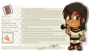 FINALLY, a Native America that is alive when all the other Hetalia characters are and actually LOOKS like a Native! I really like the detail about an affair with France, and using the common Navajo last name of Begay is a nice touch too. Thanks for making pretty much the only unoffensive Hetalia Native OC!