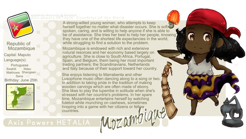 Kudos for showing research in there though. She looks cute, and I like how she isn't, like, ridiculously pale as many other OCs I see out there, but I'm kinda shaky on the whole idea of a single OC for and entire continent's worth of cultures and peoples.