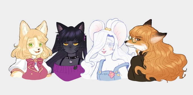 #bird #calico #cat #chibi #fox #sharkgirl #sparkle #taberyfoxart