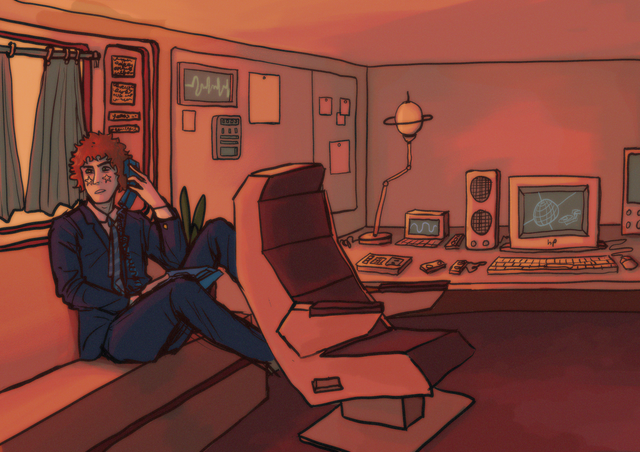 Zoom in to see clearly New character :] He still needs a name but hes an engineer/scientist that works with spacecrafts and satellites, specifically the Mariner 10. He's very passionate about his work and helped design and collect data for their mission to mercury and venus. Hes a very sweet and happy guy for the most part and isnt known for being out of work often.