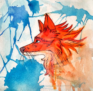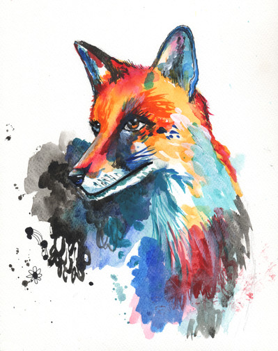 #animals #blackandwhite #foxes #heart #pawprint #purple #purplefox #splatters #swirls #watercoloranimals #watercolorfox #watercolorpainting #inkandwatercolor #foxpainting