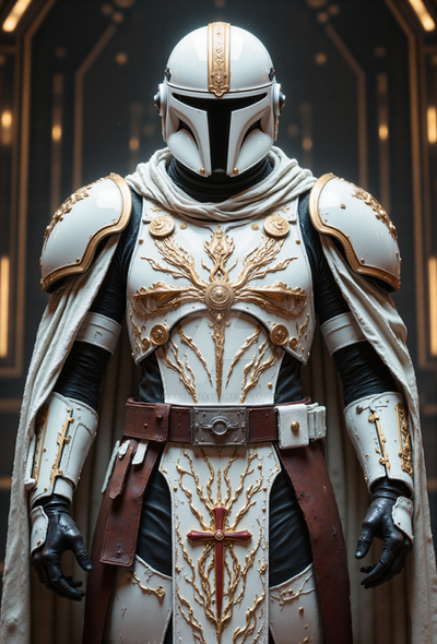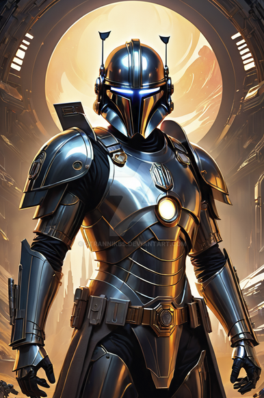 After being abandoned by the Empire, a squad of Clone veterans were employed by King Jubulex as his private guard, gifting them all a set of custome made armor.This image was created by AI with Midjourney