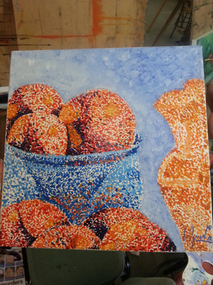 I didn't realize it was a shadow under the plate until I nearly finished it. During the whole time I was thinking, what the hell is that thing he painted under there? #